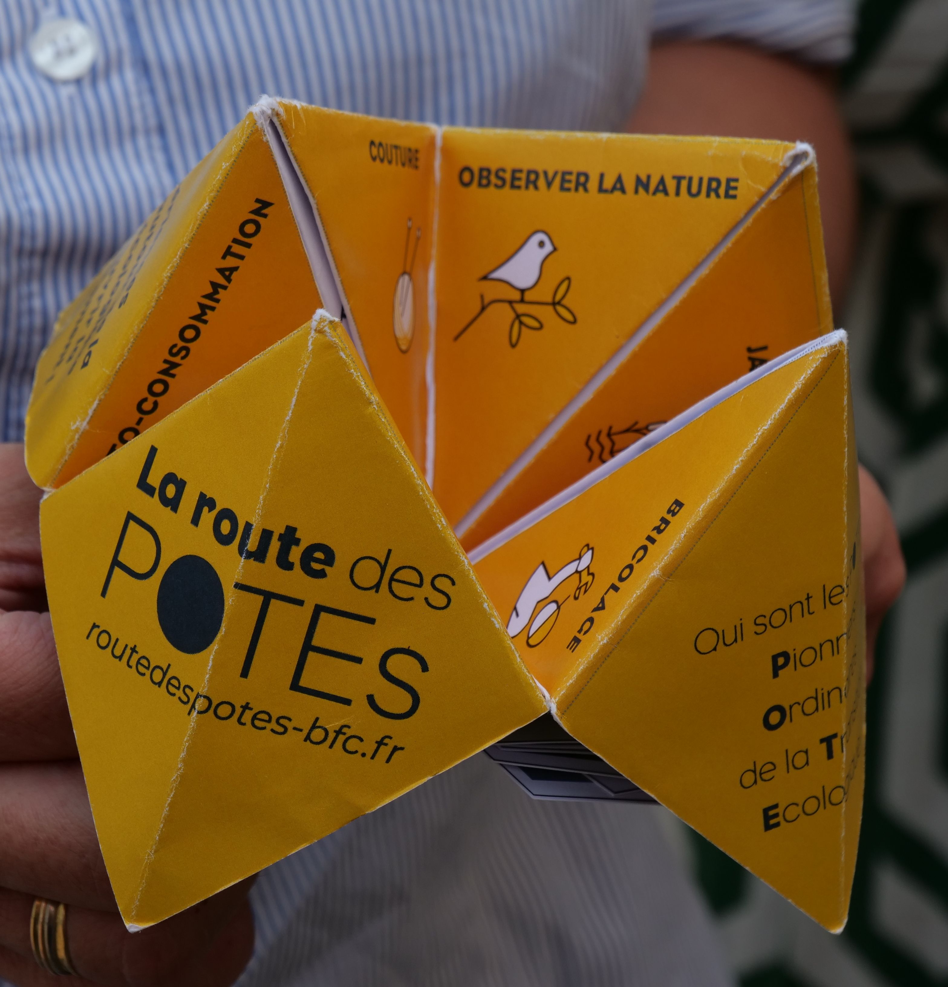 La « cocote en papier », celle des (anciennes) cours d'école : simple dans sa forme, permet d’aborder la Route de manière ludique, rapide, avec de courtes informations pour donner envie de participer aux étapes proposées par les POTEs.
